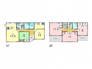 【間取】1階:LDK17.5、LDK13、和6、洗面、浴室、トイレ/2階:洋11.5、洋11、洋8、洗面、トイレ、バルコニー×2 ●セキスイハイム様施工 ●リフォーム内容:浴室、トイレ、洗面所、床(フローリング等)、壁・天井(クロス・塗装等) ●瑕疵保険検査基準に適合、瑕疵保険(国交省指定)による保証付(保険期間:2年/保証範囲:構造躯体、雨漏り)/建物検査実施日:2026年2月14日/保険料:買主様負担なし) |